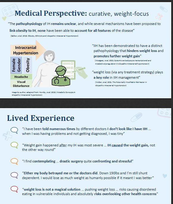 Moes, Kelly. “&Quot;Just Lose Weight&Quot;: Weight-Based Medical Bias and Experiential Expertise in Intracranial Hypertension.” Griffith University, Gold Coast: Weight Stigma Conference, 2025.